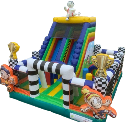 Dmuchany Plac Zabaw Piłkarski to idealna atrakcja dla młodych miłośników piłki nożnej. Solidna konstrukcja i kolorowe detale zapewniają bezpieczną i radosną zabawę.