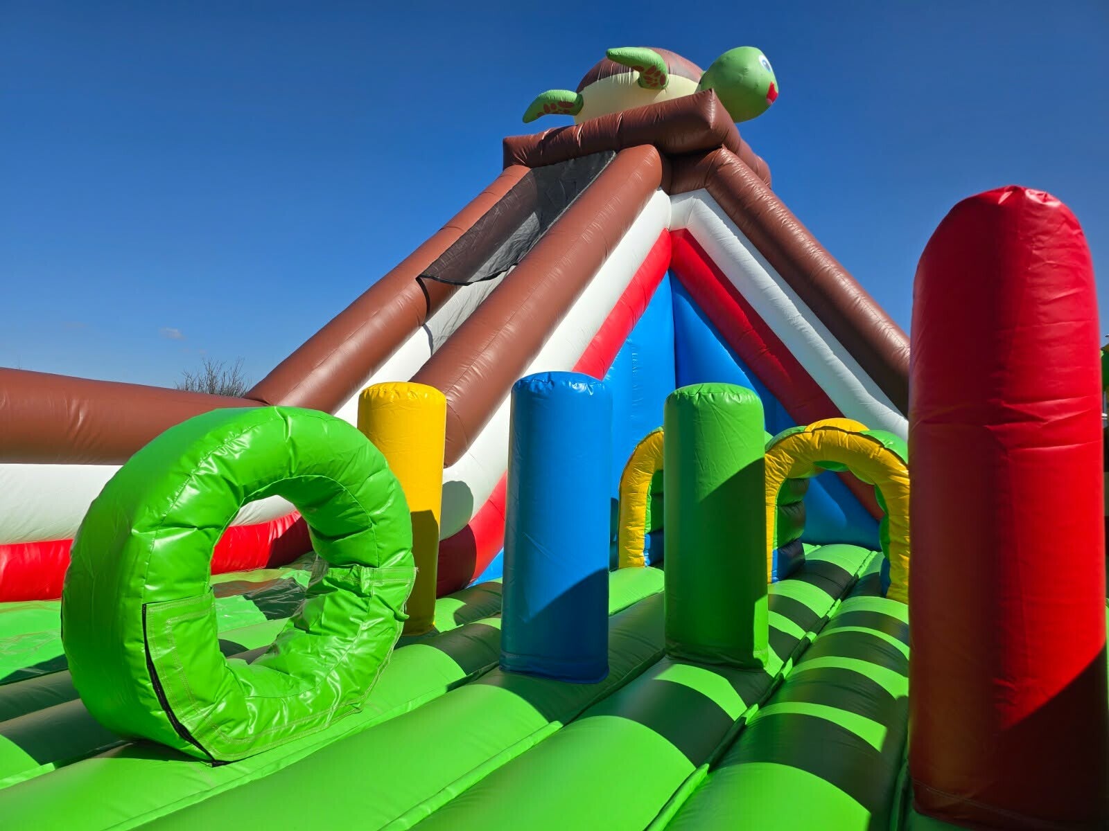 | Dmuchany Plac Zabaw Żółw to kolorowa i bezpieczna strefa zabawy, która zachwyca dzieci swoim uroczym kształtem żółwia. Wbudowane zjeżdżalnie i przeszkody zapewniają mnóstwo radości oraz rozwijają aktywność fizyczną. |