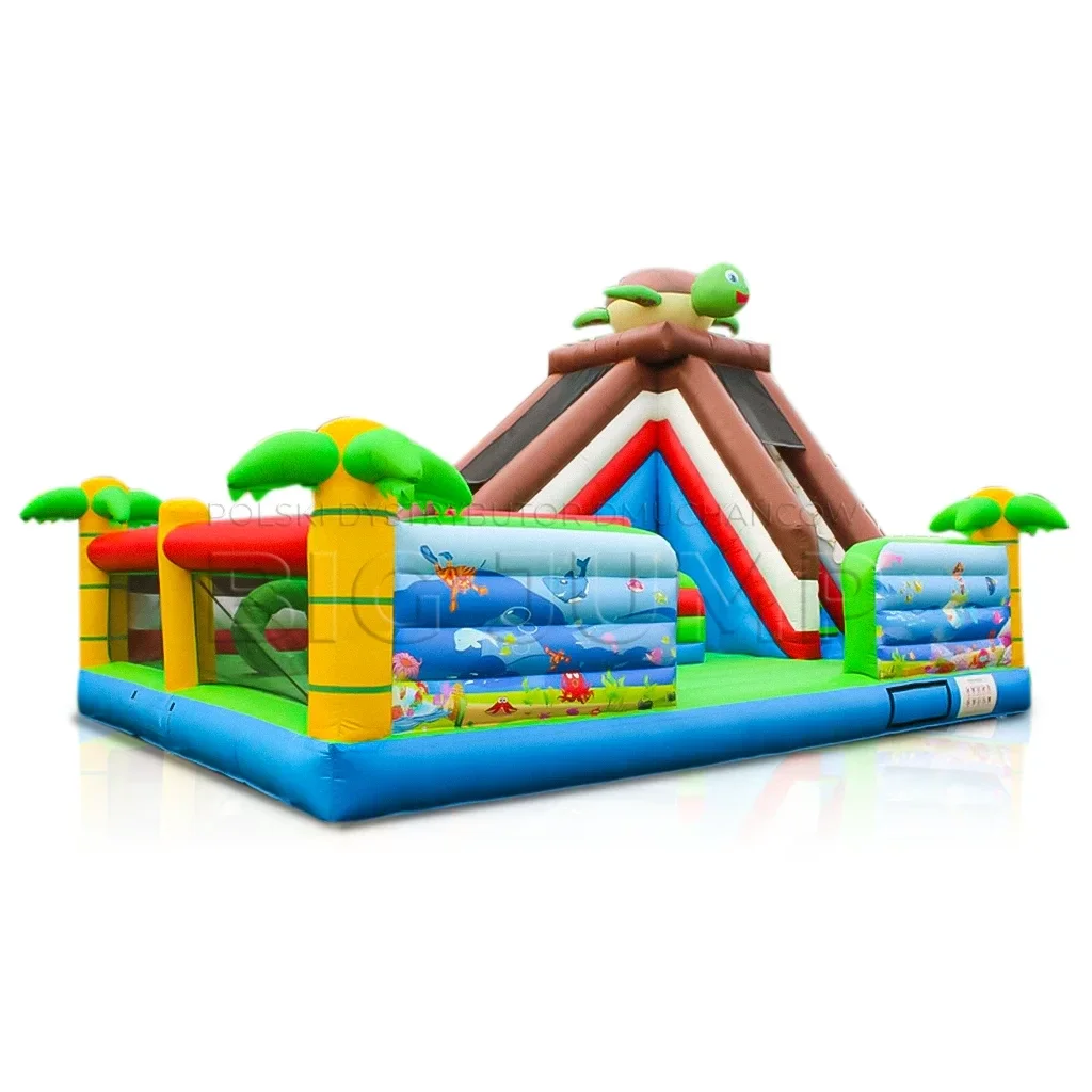| Dmuchany Plac Zabaw Żółw to kolorowa i bezpieczna strefa zabawy, która zachwyca dzieci swoim uroczym kształtem żółwia. Wbudowane zjeżdżalnie i przeszkody zapewniają mnóstwo radości oraz rozwijają aktywność fizyczną. |